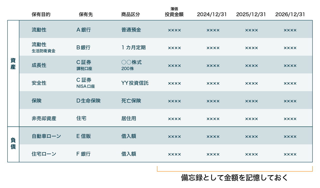 一覧表を作成して資産と負債を可視化する