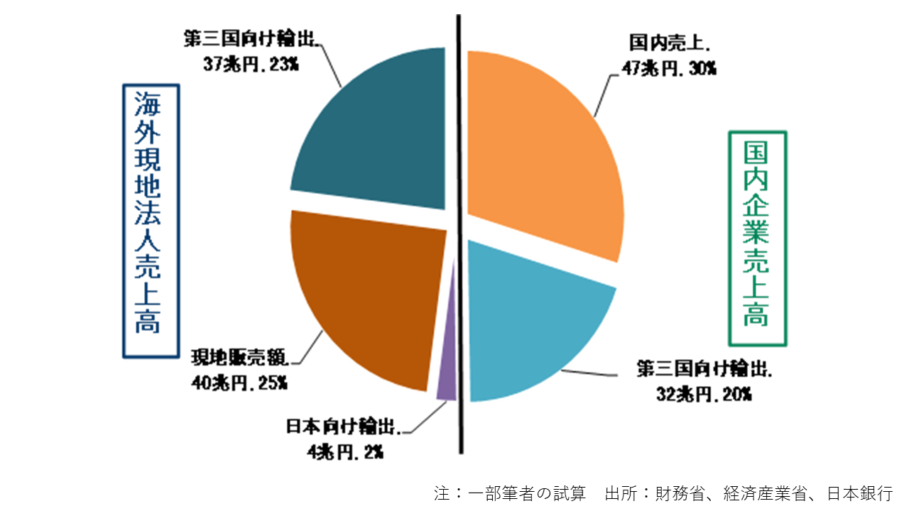 株価という観点から言えば、トランプ関税により最も悪影響を受けそうなセクターが、日本の基幹産業である輸送機械業と想定される点も不安の種です。なぜなら、日本の製造業の中で、最も米国に輸出している金額が大きい産業は輸送機械業であり、輸送機械業の海外現地売上高で最もシェアが大きいのも米国です。