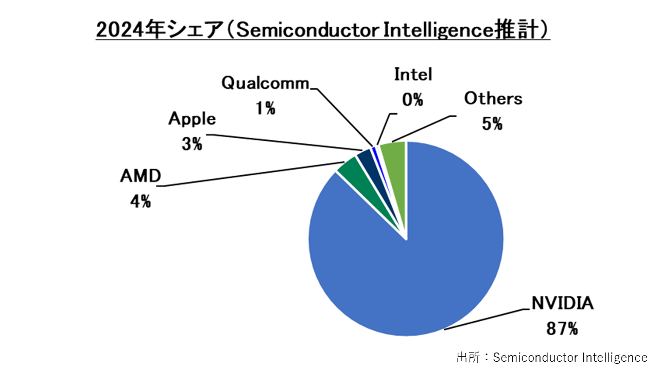ただ、生成AI開発の競争に一度乗り遅れればキャッチアップが困難になると考えられるため、当面は生成AI向け投資の抑制は考えにくいとみられます。また、生成AI向け半導体の供給の大部分はエヌビディアが担っており、供給企業が限られていることから需給ひっ迫が続きやすいとの見方もあります。
