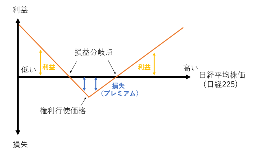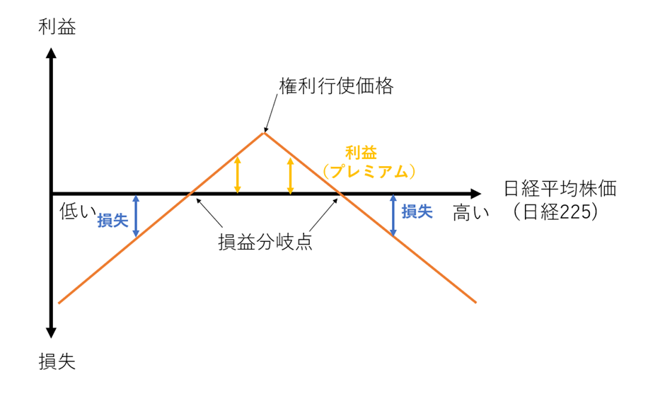 図5.コールオプションの買い、プットオプションの買いの組み合わせ