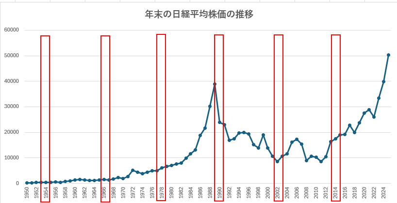というのは、相場の格言通り、「辰年」の2024年と「巳年」の2025年の2年間は、見事なほど“お告げ”通りに株式相場が動いたからである。「辰年」の昨年は日経平均株価の終値が前年末比で6430円高の3万9894円と天井が押し上げられた。「巳年」の今年も、先月末(11月28日)のそれが同じく1万0359円高の5万0167円を付けた。補足すれば、今年は3月から7カ月連続で上昇した。高市早苗氏が10月21日に「責任ある積極財政」を掲げて、わが国最初の女性総理に就いたことを受けて、10月は終値が史上最高値(5万2411円)を記録した。月間の上げ幅も過去最大だった。まだ師走相場が残っているものの、これだけ天井が押し上げられれば、今年(巳年)も「大相場」の年として記憶されるだろう。