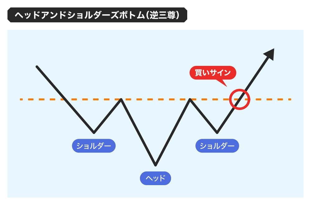 ①ヘッドアンドショルダーズボトム(逆三尊)