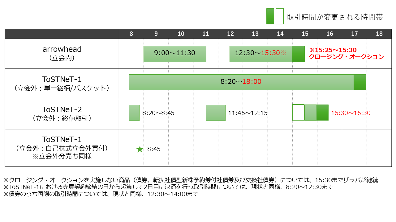 ・当該変更に合わせて、ToSTNeTやデリバティブ市場の取引時間についても、見直しを実施