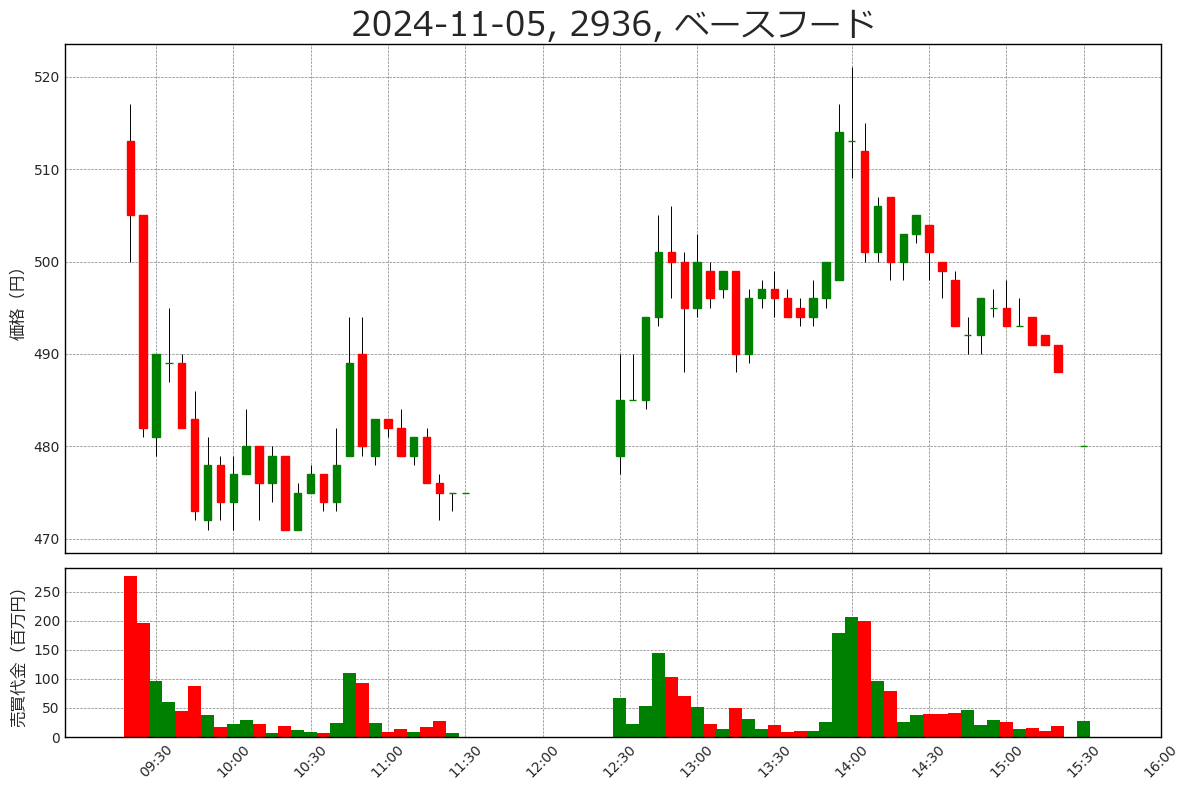 一方で、クロージング・オークションに関しては、先ほど紹介したベースフードの5分足チャートでもわかる通りです。短期勢の方はトレードのトリガーとしてボラティリティの急変やSNSでの情報タイミングが使いやすいので、あまりクロージング・オークションによる利便性向上は感じられてないと思います。