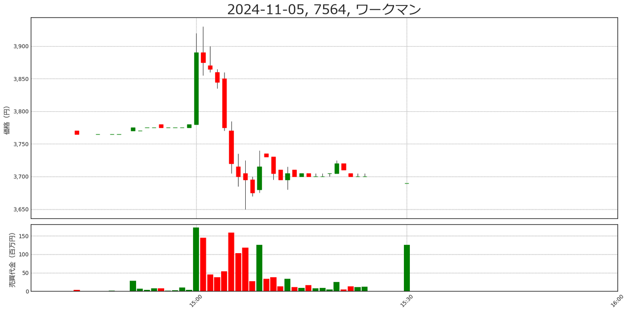 7546 ワークマン(東証スタンダード)は15時に決算を開示し、直後は買われましたがその後売りに押され、引け前にはフェアバリューを見つけたようでほぼ安定的な株価で取引を終えています。つまり、開示直後のボラティリティの後に取引時間が延長されたことで、フェアバリューを見つけるための時間ができたことになります。これは取引時間延長で利便性が増したと言えるのではないでしょうか?