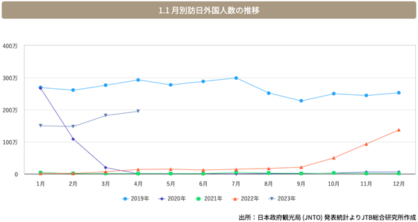 図4. 月別訪日外国人数の推移(出典:JTB総合研究所)