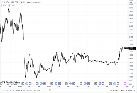図9. ヒビノ<2780>株価チャート(Trading View)