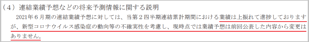 freee株式会社の2021年6月期の決算短信。業績予想について「業績は上振れて進捗しているが、現時点では変更はない」と記載されている。次の決算で上方修正した。