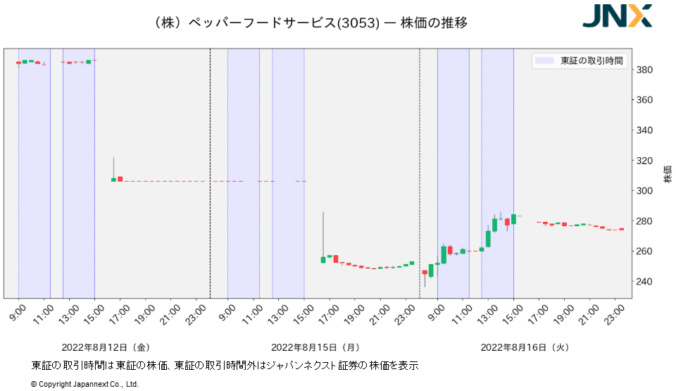 事例②2022年8月12日 (株)ペッパーフードサービス(銘柄コード:3053)