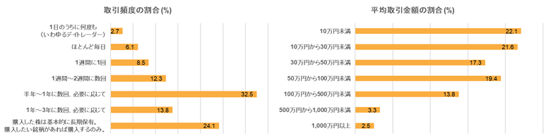 また、株式取引の頻度と平均取引金額からも、短期的な売買を繰り返すのではなく、余資を比較的長期スパンで運用していることがうかがえます(設問1-2参照)。