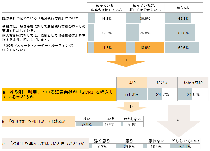 ところで、個人投資家は、このような最良価格での約定を証券会社に求めているのでしょうか。また、それを可能とするための制度である「最良執行方針」や、そのためのシステムである「SOR」は、どの程度、個人投資家に浸透しているのでしょうか。
